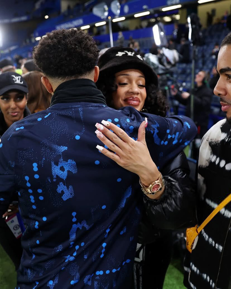 虽然远离赛场,但桑乔在球场外过得非常滋润。他最近与美国说唱女星女友萨维蒂(Saweetie)一起出现在纹身店,将女友原名中的「Quiava」纹在耳朵下方。目击者披露两人在店里热吻,还亲得很热烈。过去,这位女星曾现场观看桑乔在切尔西的比赛,后者专门跑到场边拥抱了她。